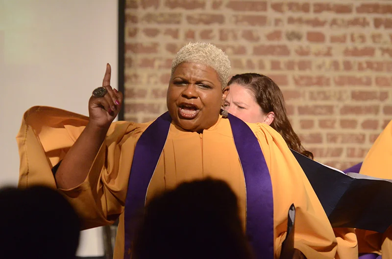 A Conversation about the themes in the play was held among clergy after the reading, facilitated by Rev. Julie Peeples, Senior Minister at the United Congregational Church of Christ in Greensboro, and Rev. David Fraccaro, Director of the Faith Action International House, also in Greensboro.